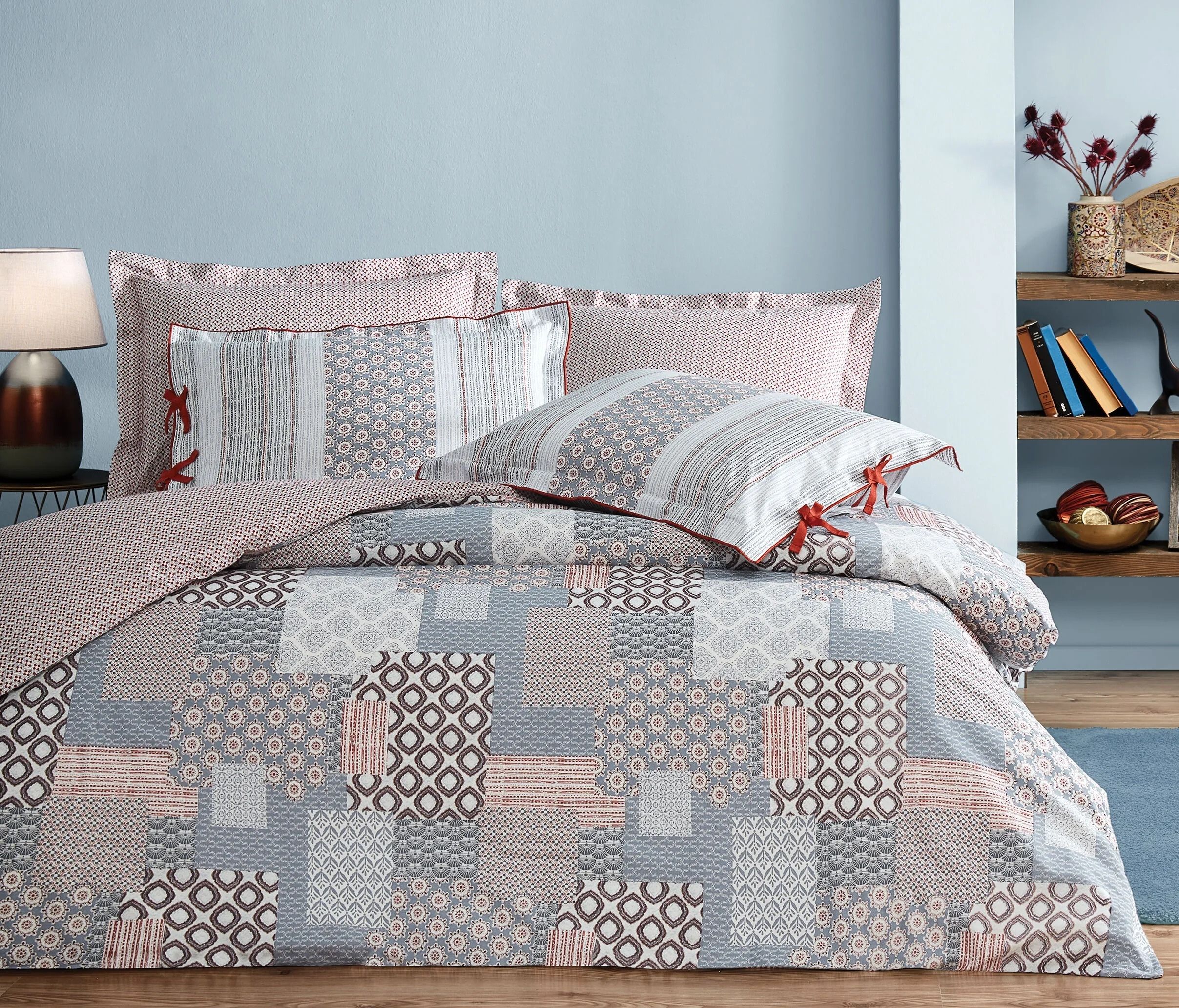 Puffy Çift Kişilik Reece Rnf Baskılı Nevresim Takımı - Mavi